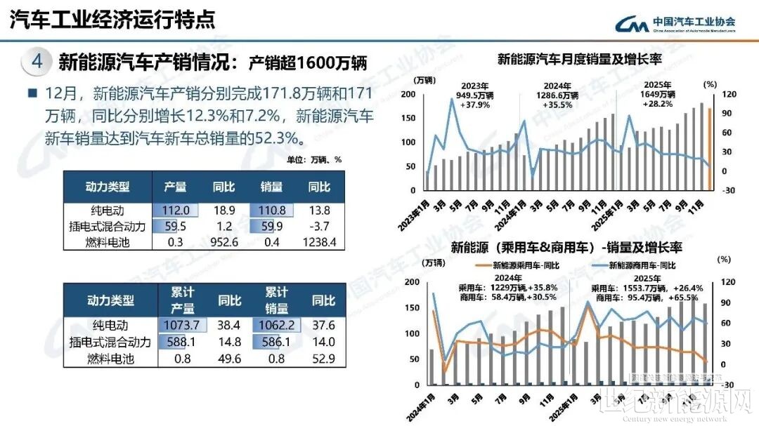 根据中汽协数据,2025年12月全国燃料电池汽车产销分别完成3179辆和3587辆,同比分别激增952.6%、1238.4%。