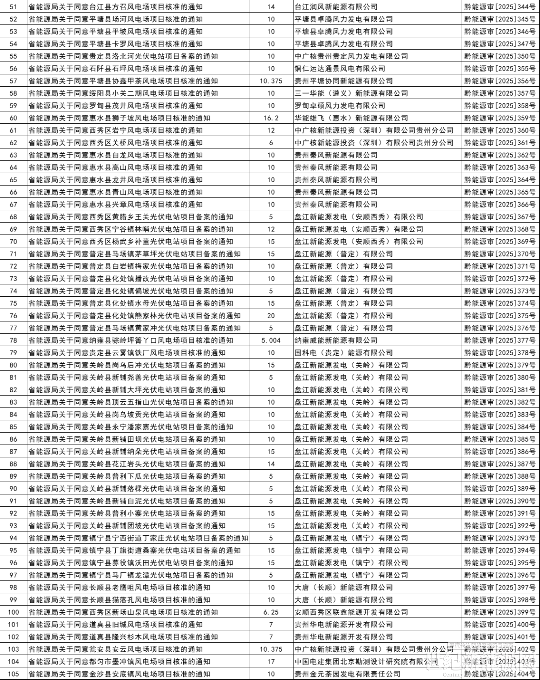 根据《省人民政府关于印发贵州省企业投资项目核准和备案管理办法的通知》(黔府发〔2018〕第7号),按照程序,贵州省能源局2025年10月-2025年12月核准备案风电、光伏发电项目105个,现将有关情况公布如下。