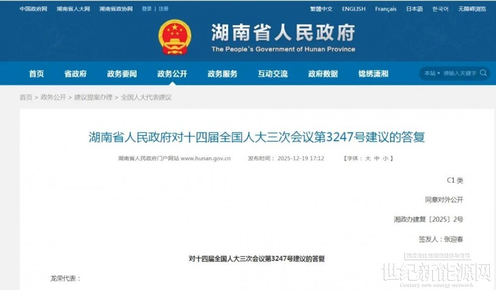 近日,湖南省人民政府发布对十四届全国人大三次会议第3247号建议的答复。