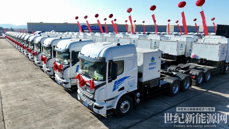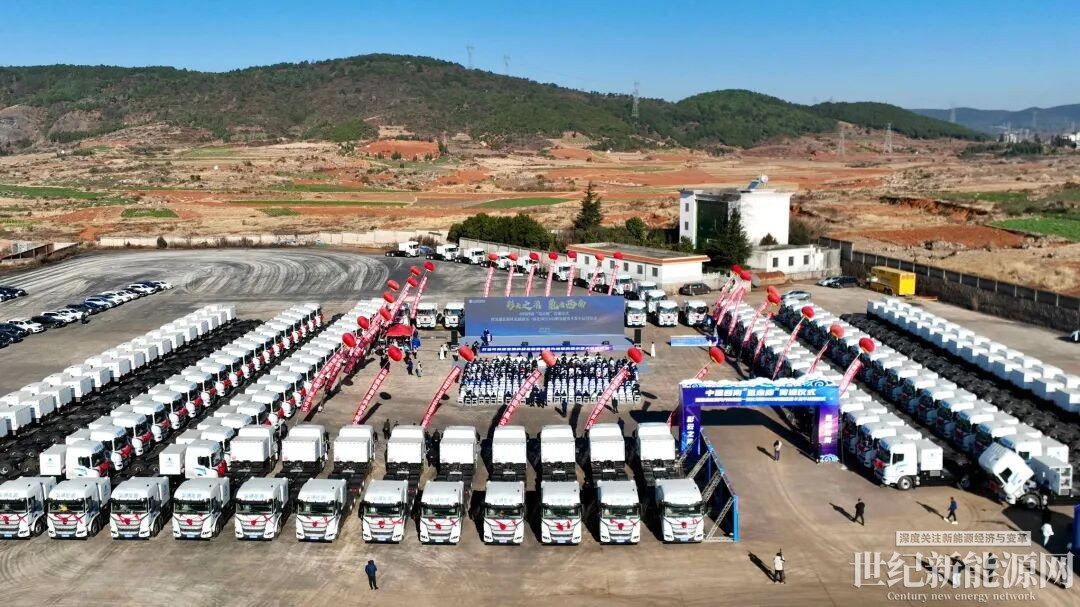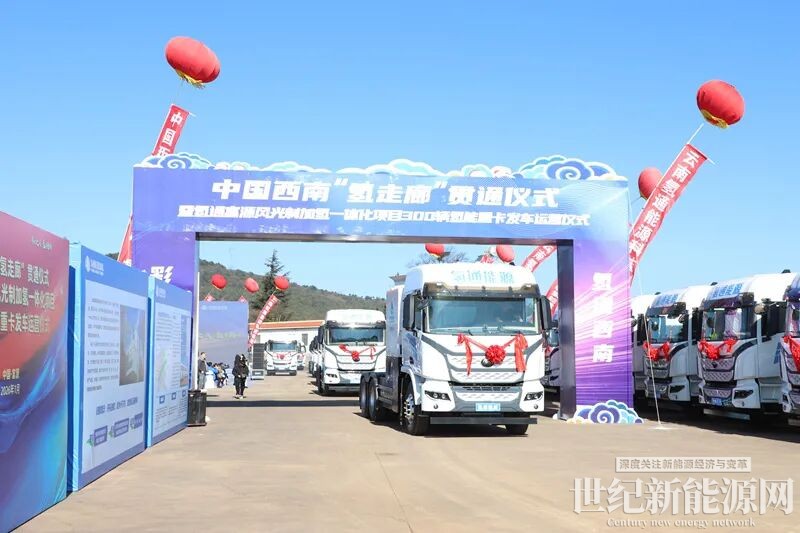 1月16日,中国西南“氢走廊”贯通仪式暨氢通富源风光制加氢一体化项目300辆氢能重卡发车运营仪式在富源举行。