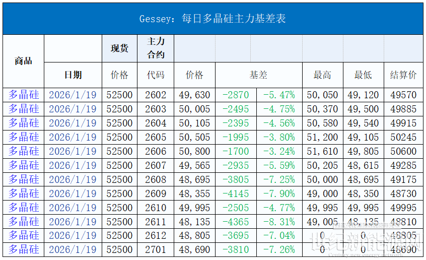 今日硅料价格整体维稳,N型料主流价格在50-56元/公斤,均价52.5元/公斤。N型颗粒硅主流价格在47-51元/公斤,均价50元/公斤。国产复投特级硅料主流价格在36-44元/公斤,均价43.5元/公斤,国产致密特级硅料主流价格在35-43元/公斤,均价42.5元/公斤。全球多晶硅料主流价格在19-22元/公斤,均价20元/公斤。