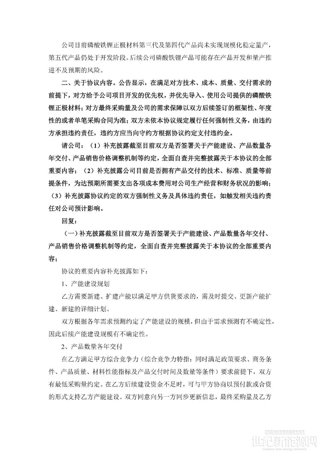 在经历了两次延期回复后,容百科技于1月18日晚,也就是被证监会立案的同一日,终于对外披露了问询函的回复内容。这份回复,非但没有平息疑虑,反而揭开了这份“超级合同”背后一系列的不确定性。
