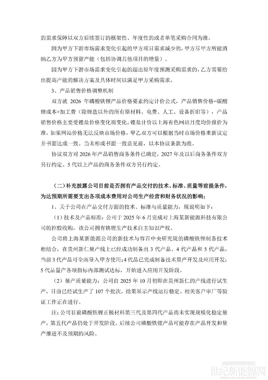 更引人关注的是公司产品技术的成熟度。容百科技在回复中坦言,其磷酸铁锂第三代、第四代产品尚未实现规模化稳定量产,第五代产品仍处开发阶段。据悉,其宣称采用的“革命性新工艺”在业内亦存争议,能否成功应用于大规模生产,仍需时间验证。