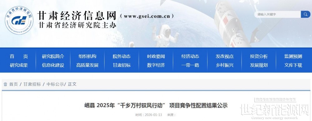 1月13日,甘肃岷县2025年“千乡万村驭风行动” 项目竞争性配置结果公示。