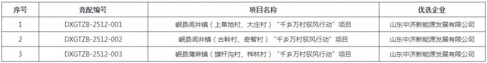 公示显示,3个项目中选人均为山东中济新能源发展有限公司,每个项目容量为40MW,总容量为120MW。