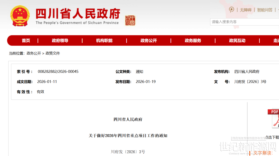1月19日,四川公布《关于做好2026年四川省重点项目工作的通知》。