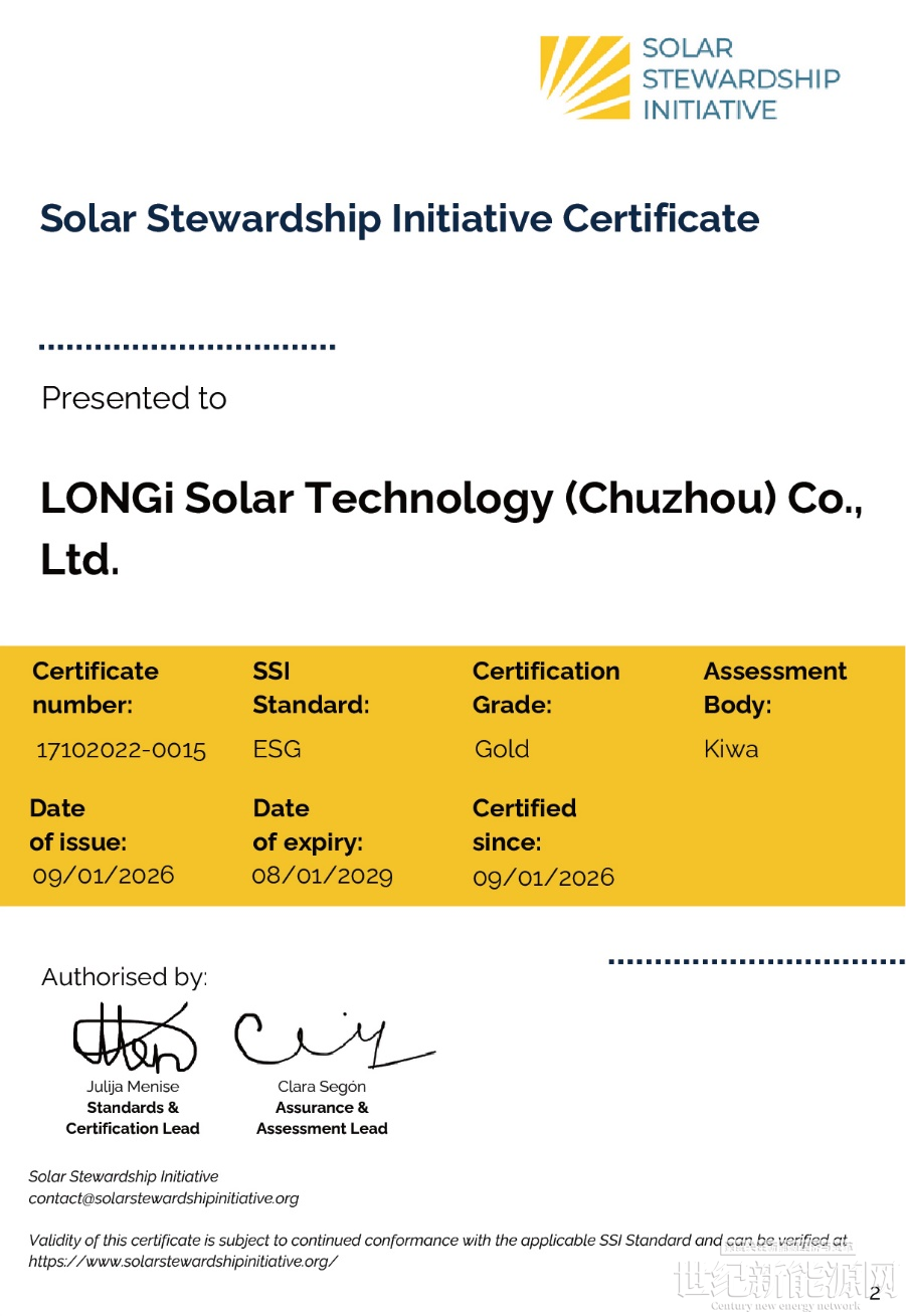 隆基绿能副总裁佘海峰表示:“获得SSI-ESG金牌认证,是对我们可持续发展实践的国际认可,也彰显了我们对欧洲客户核心价值的承诺——即提供可信赖的绿色产品。我们将持续以技术创新驱动,为欧洲客户提供高效、低碳足迹的光伏解决方案,助力降低能源转型成本、提升能源自主性,并携手加速碳中和进程,共同迈向可持续未来。”
