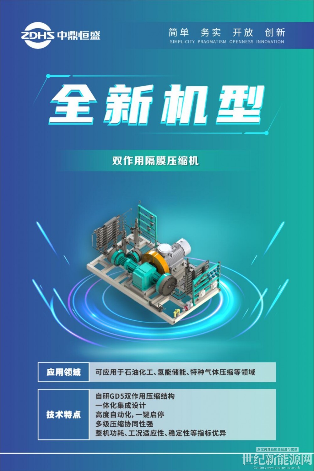 中鼎恒盛双作用GD5隔膜压缩机的诞生,并非简单的产品升级,而是针对隔膜压缩机在高压氢气应用领域长期存在的“系统冗余、效率受限、空间占用大”等核心痛点,提供的一项系统性解决方案,是缩机技术向更高效、更紧凑、更智能方向演进的重要里程碑。未来,中鼎恒盛将以技术创新为引擎,持续推动高端装备国产化进程,为氢能等新能源产业发展注入强劲动力。