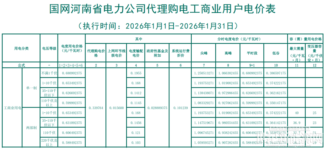 1月20日,河南发改委发布《关于调整我省工商业分时电价峰谷浮动基数的通知(征求意见稿)》。文件提出,直接参与电力市场交易的用户已不再执行工商业分时电价政策,电网企业代理购电用户执行工商业分时电价的,输配电价不再参与峰谷浮动。