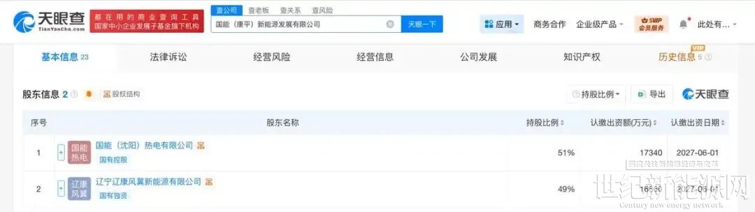 股东信息显示,该公司由国能(沈阳)热电有限公司、辽宁辽康风翼新能源有限公司共同持股。