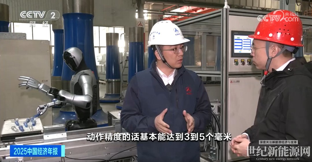 在此背景下,三一重能率先破局,实现人形机器人在风电装备制造场景的全球首次落地应用,并获央视财经频道《2025中国经济年报》专题报道。央视总台记者深入三一重能风电整机智能制造工厂,实地探访其如何以“人工智能(AI)+场景”的深度融合,推动全尺寸工业人形机器人在多元场景中的应用实践。