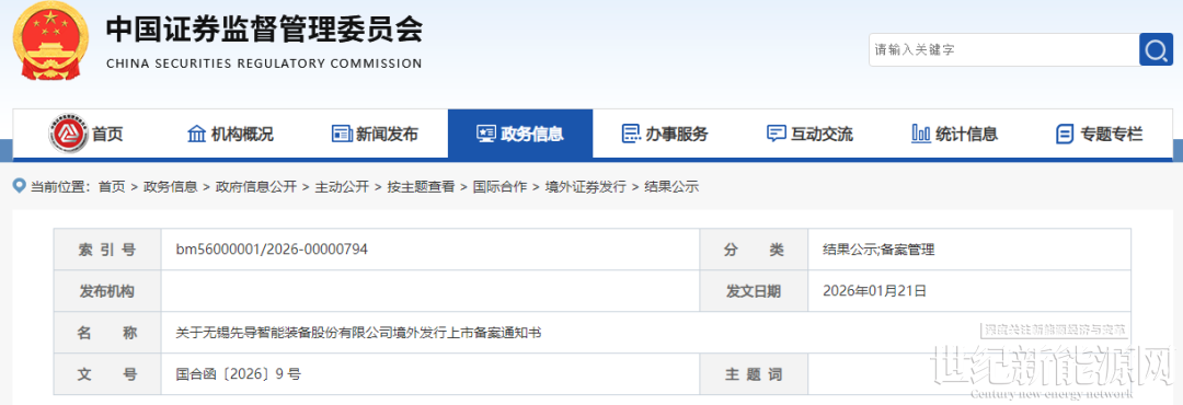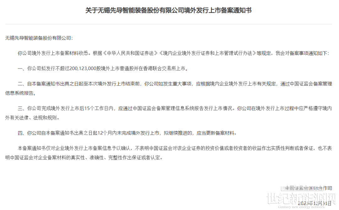 1月21日,中国证监会国际合作司发布《关于无锡先导智能装备股份有限公司境外发行上市备案通知书》。