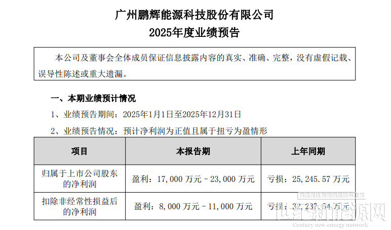 1月21日,广州鹏辉能源科技股份有限公司发布2025年度业绩预告,宣布公司业绩实现扭亏为盈。