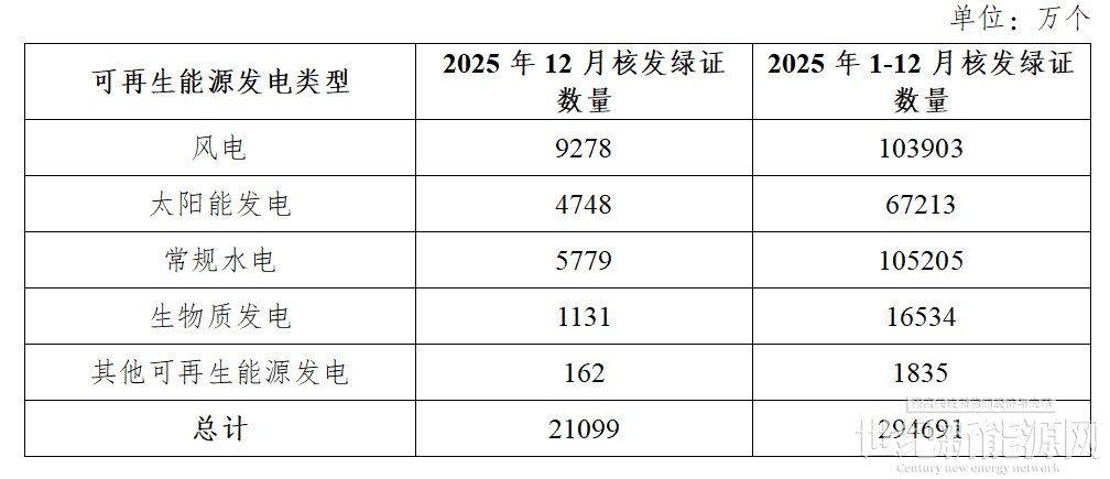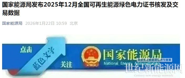 1月22日,国家能源局发布2025年12月全国可再生能源绿色电力证书核发及交易数据。