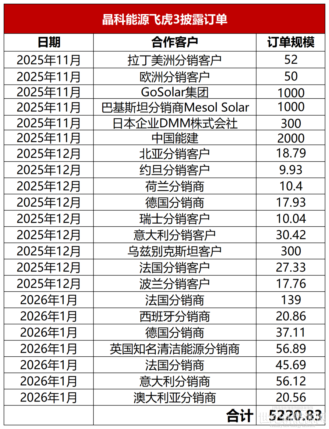 这其中,隆基和爱旭减亏明显,尤其是爱旭股份,2025年减亏高达77.44%,高效组件的高溢价效应可谓是立竿见影。同时,市场对高效组件的认可程度也非常积极。2025年11月20日,晶科飞虎3正式量产,仅仅2个月已签单超5GW。