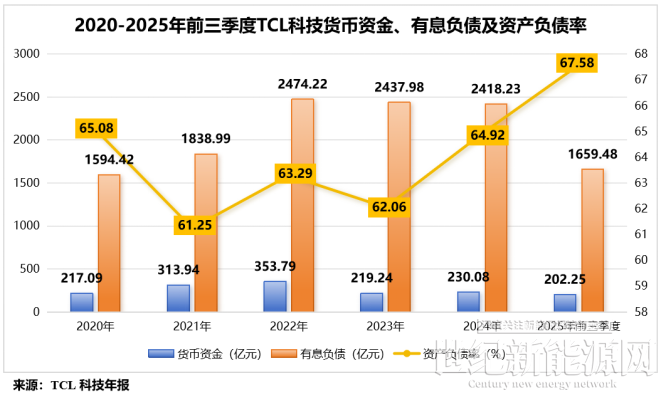 前前后后,TCL科技预估的总“支出”已经超过700亿元!值得注意的是,截至2025年三季度末,TCL科技货币资金仅202.25亿元;而有息负债却高达1659.48亿元,是公司货币资金的整整8倍多。同期,公司的资产负债率已从2021年的61.25%增长至67.58%。