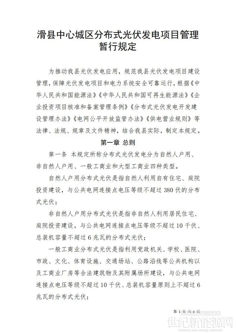 1月23日,河南滑县发改委发布关于《滑县中心城区分布式光伏发电项目管理暂行规定》公开征求意见的公告。