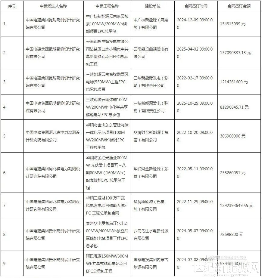 第三中标候选人:中国电建集团贵阳勘测设计研究院有限公司,投标报价为66728.98万元,折合单价0.8341元/Wh。