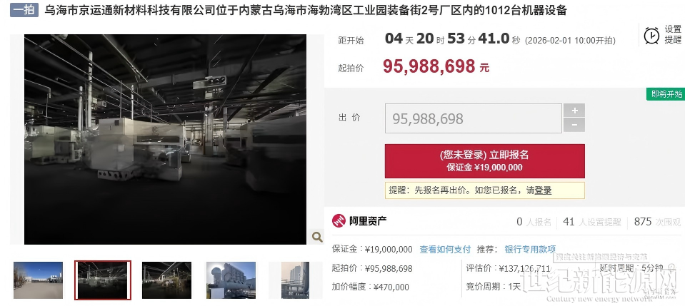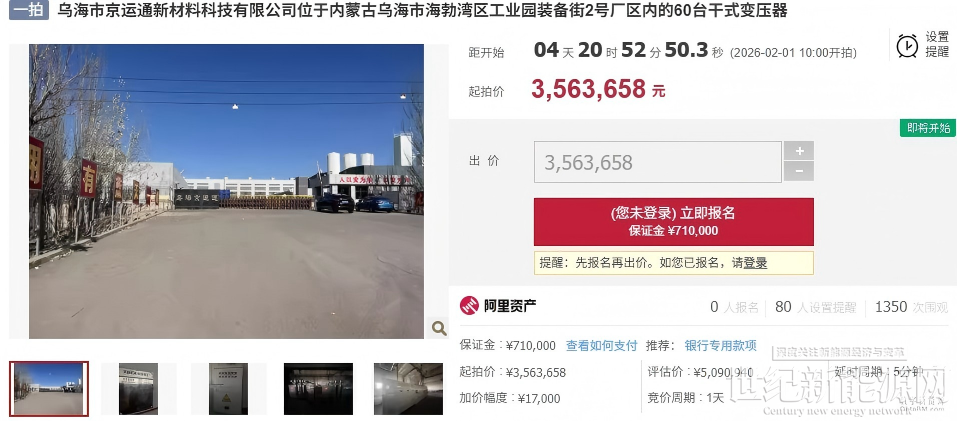 据悉,阿里拍卖2月1日10点乌海市京运通新材料科技有限公司将有两处资产被拍卖: