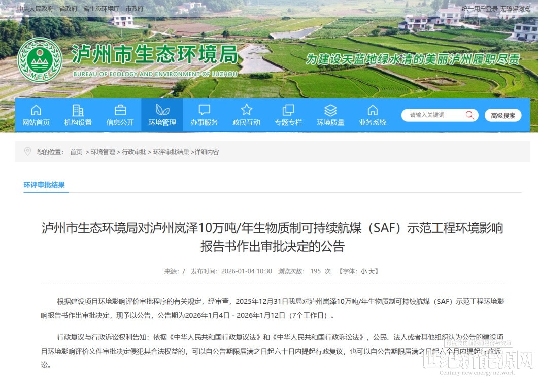 近日,岚泽能源泸州10万吨/年生物质制可持续航煤(SAF)示范工程的环境影响报告书成功通过四川省泸州市生态环境局批复,同时凭借卓越的技术创新性与强劲的产业带动效应,正式入选 “2026 年四川省重点项目” 清单。作为我国首个大型生物质气化费托路线(FT-SPK)制可持续航空燃料示范项目,此次入选不仅标志着岚泽能源在绿色能源领域的自主技术实现规模化商业化落地的重大进展,更彰显了企业深耕绿色转型赛道、引领行业发展的战略远见与责任担当,为企业构建核心竞争力、打造行业标杆奠定了坚实基础。