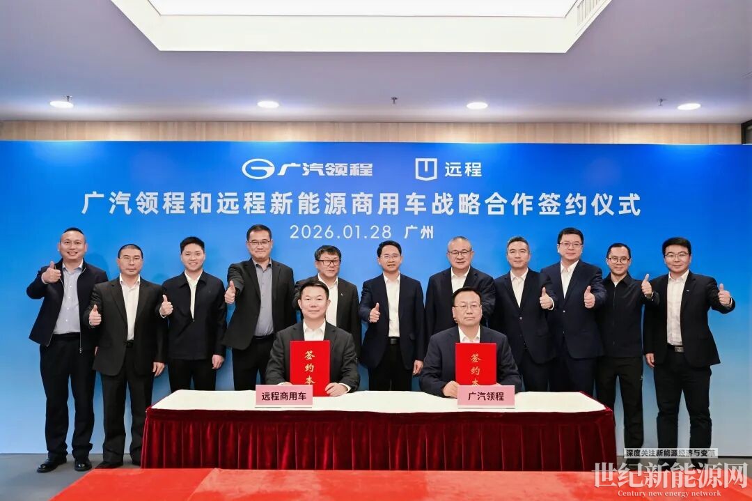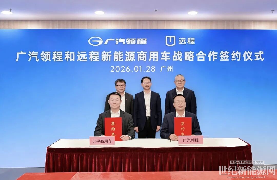 1月28日,广汽领程新能源商用车有限公司(下称“广汽领程”)与浙江远程新能源商用车集团有限公司(下称“远程新能源商用车”),在广州签署战略合作协议。广州公交集团党委书记/董事长覃海宁,远程新能源商用车集团CEO范现军、副总裁丁鼎,广汽领程总经理张志勇、首席营销官杨林等出席签约仪式。双方将在新能源商用车领域开展全方位、多层次的战略合作,共同推动我国商用车产业向绿色、智能方向加速转型。