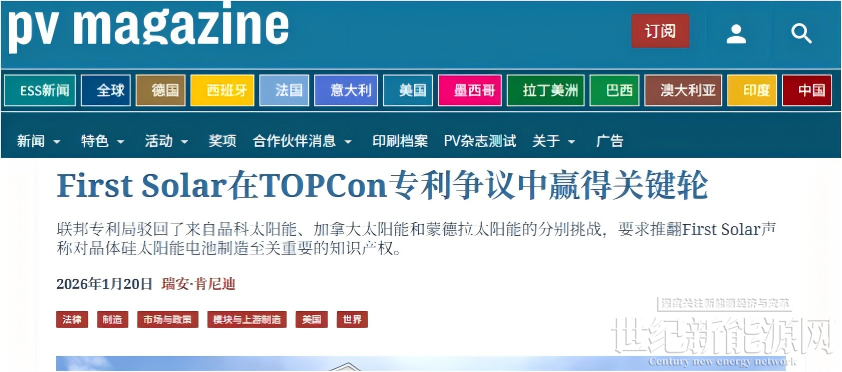 2026开年,多起专利诉讼在海外取得新进展,这对正加速出海的国内光伏巨头而言,无疑是重要考验。