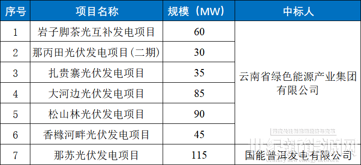 从中标结果来看,云投集团获得了345MW的项目指标,国家能源集团获得了115MW的项目指标,具体如下:
