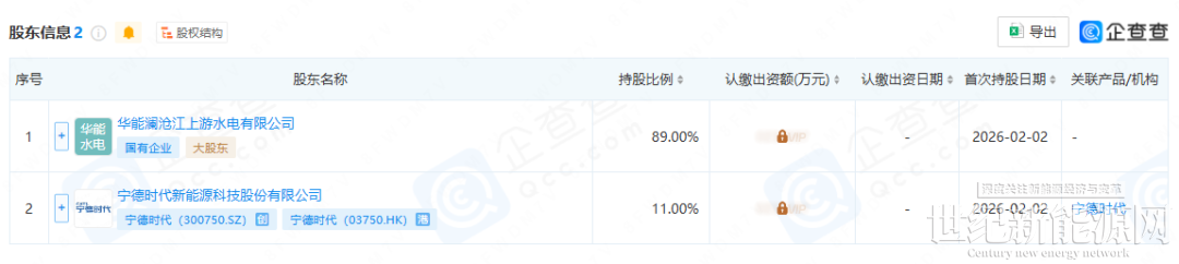 股权结构上,新公司由华能水电旗下华能澜沧江上游水电有限公司持股89%,宁德时代新能源科技股份有限公司持股11%,实现国有资本与民营龙头企业的强强联合。