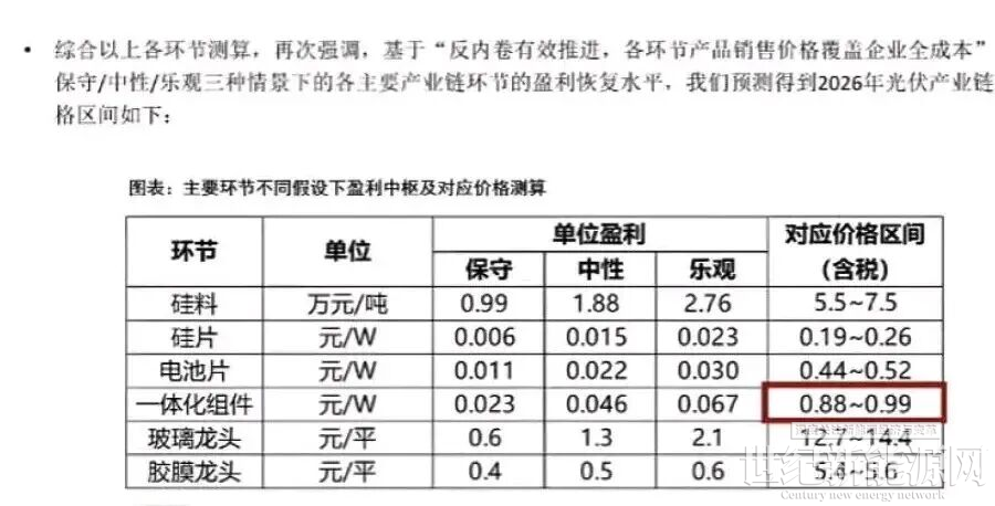 去年12月,光伏行业年度大会上,国金证券分析师提供的表格显示,明年组件的价格预计要上涨到0.88-0.99元/W,才能到达成本线。据国金证券推算,若各环节回归合理利润,组件价格很可能站稳0.9元/W,甚至向1元/W迈进。