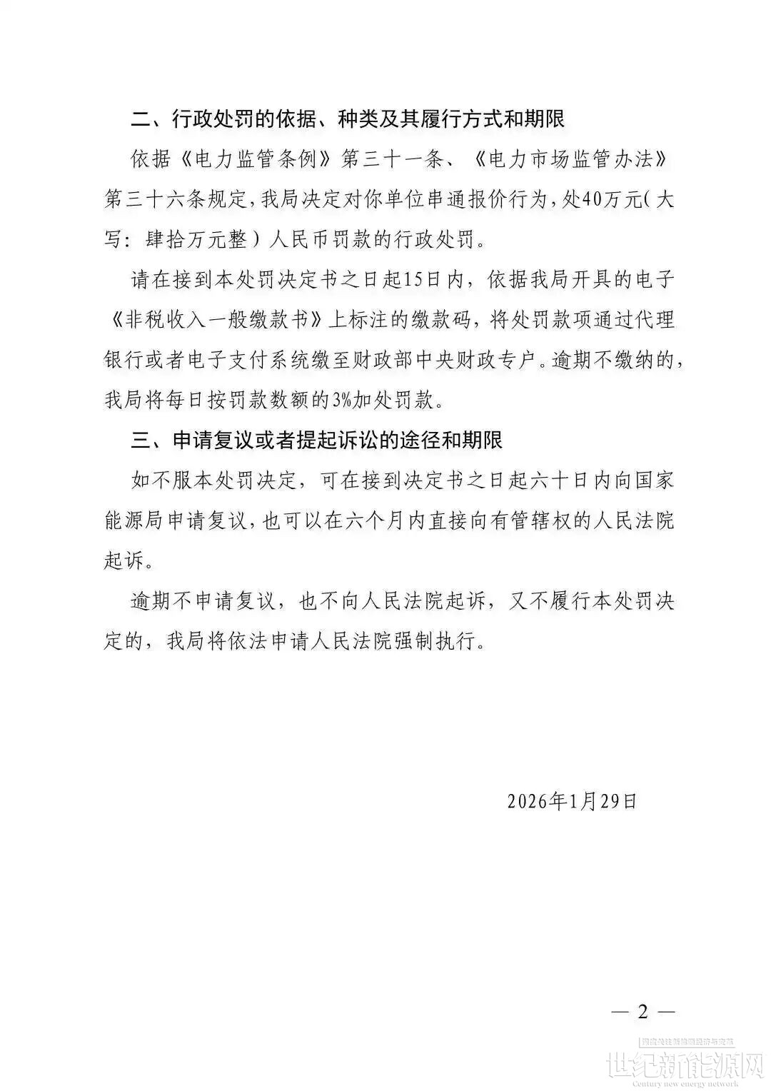 1月30日,华东能源监管局发布行政处罚决定书(华东监能罚字〔2026〕15号、华东监能罚字〔2026〕16号、华东监能罚字〔2026〕17号)。