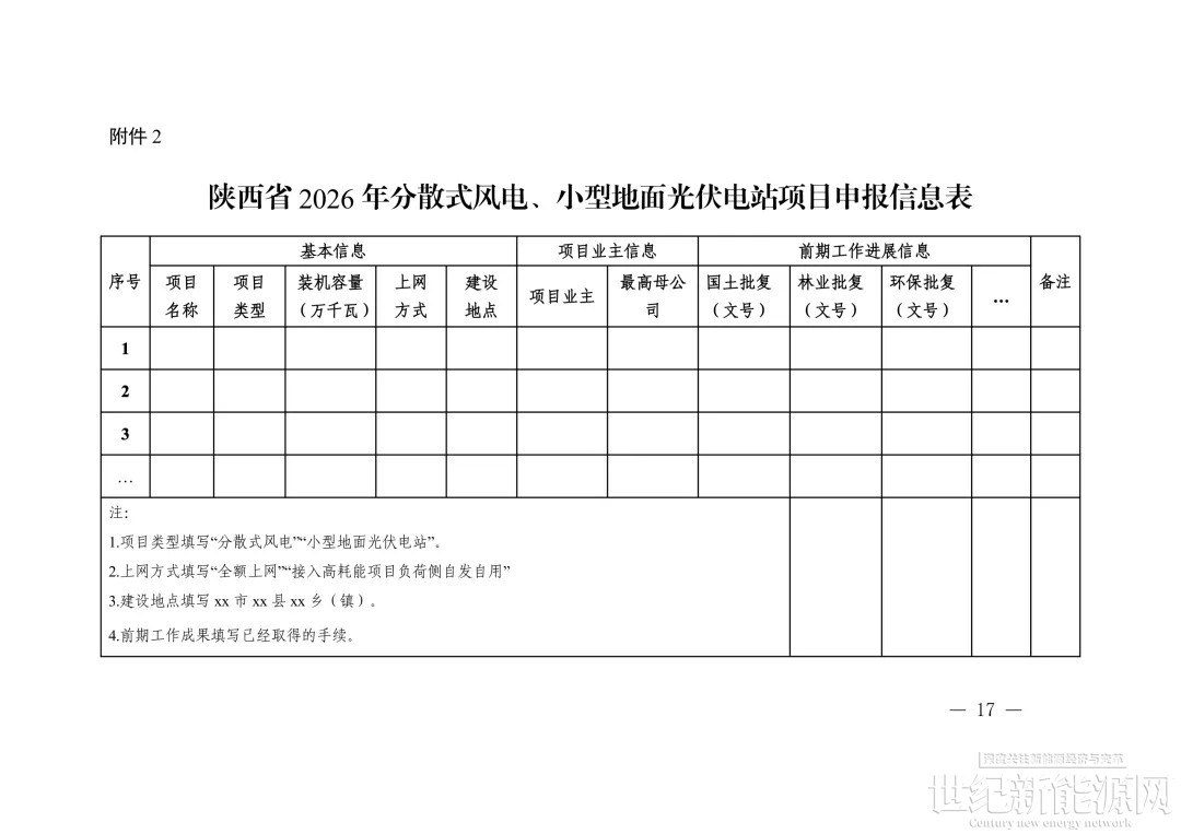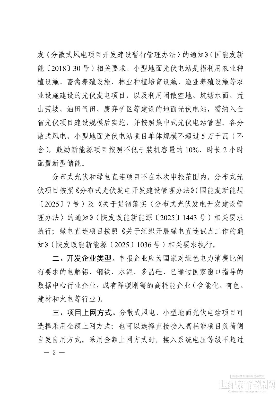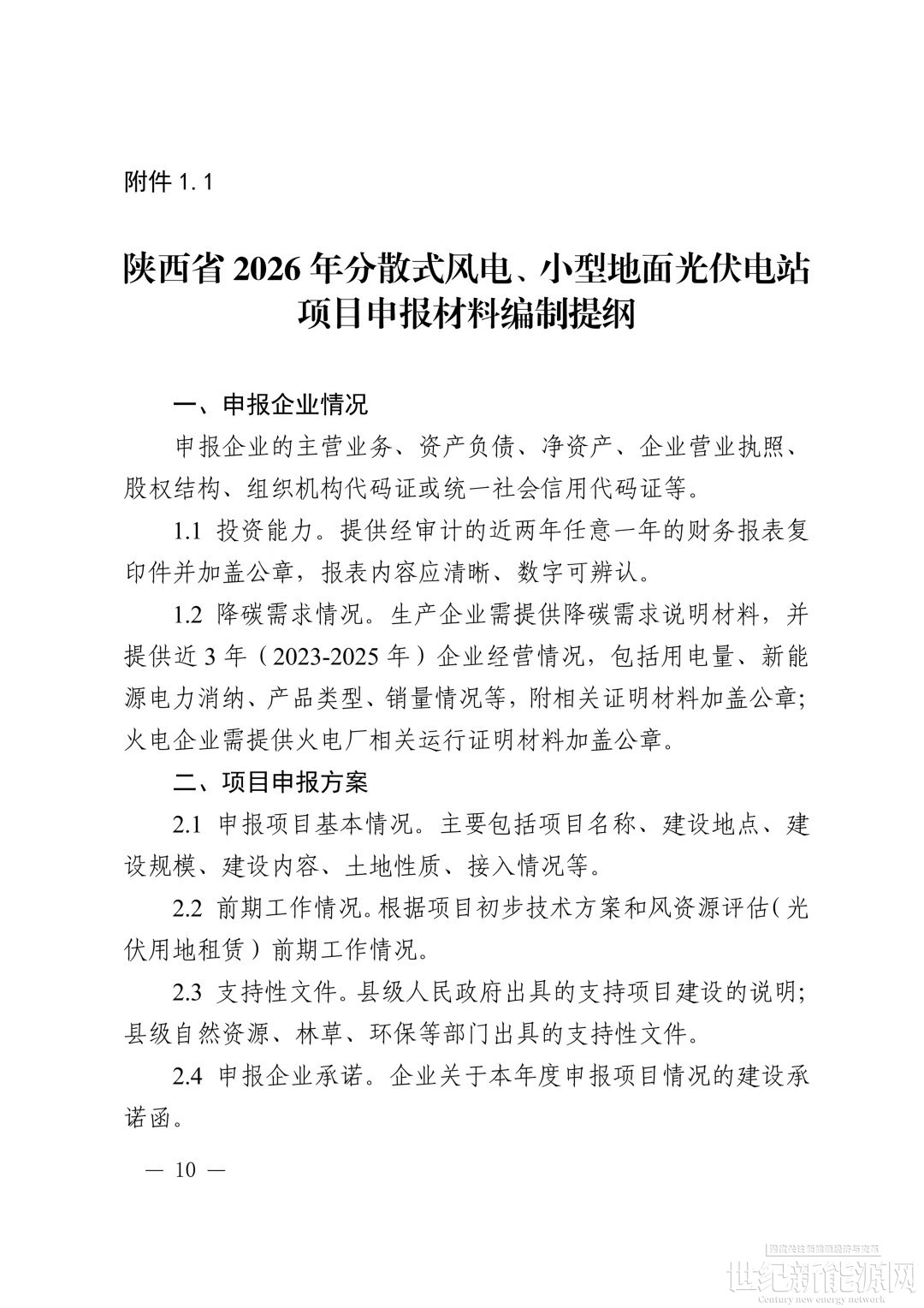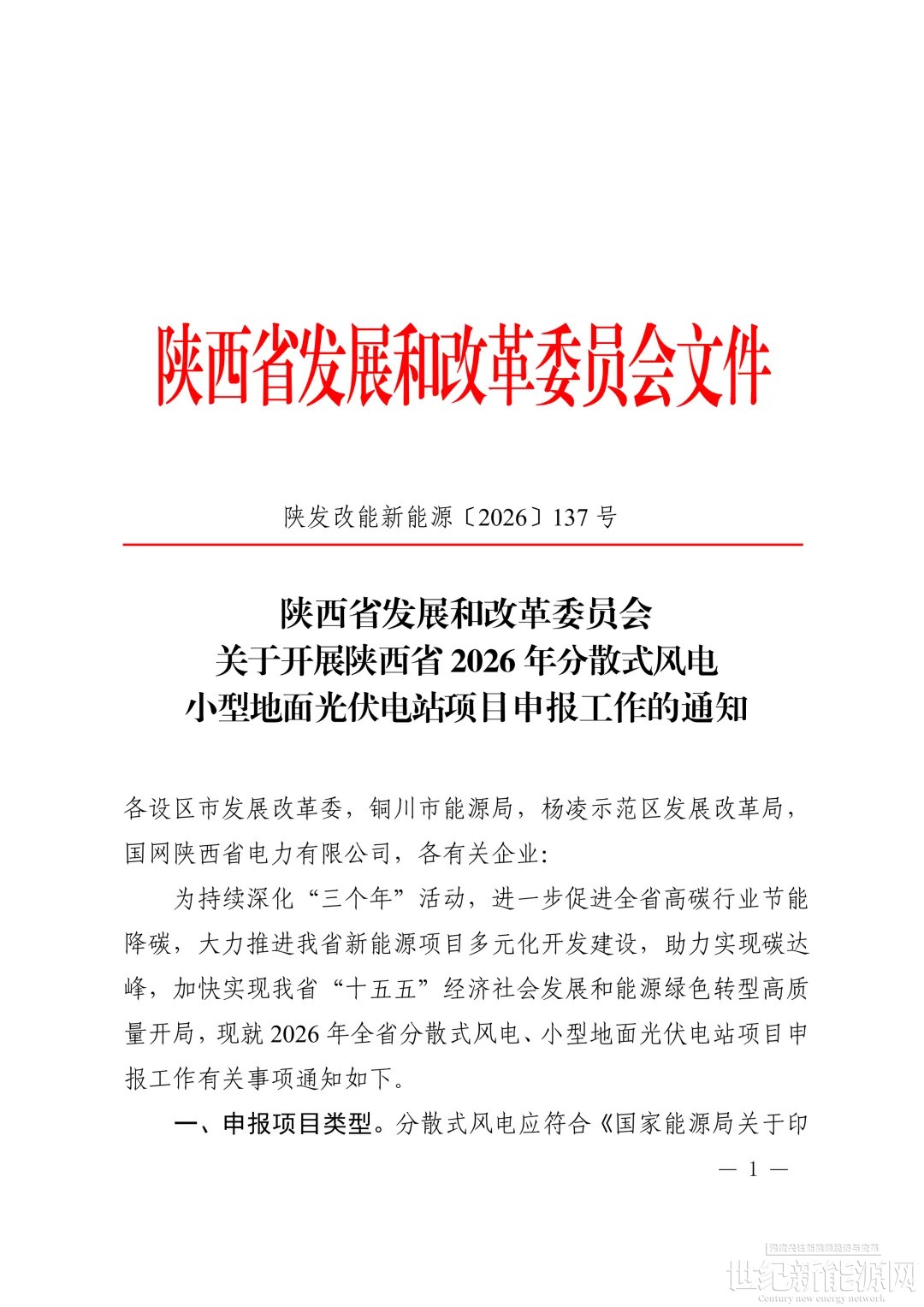 2月2日,陕西省发改委发布关于开展陕西省2026年分散式风电 小型地面光伏电站项目申报工作的通知。