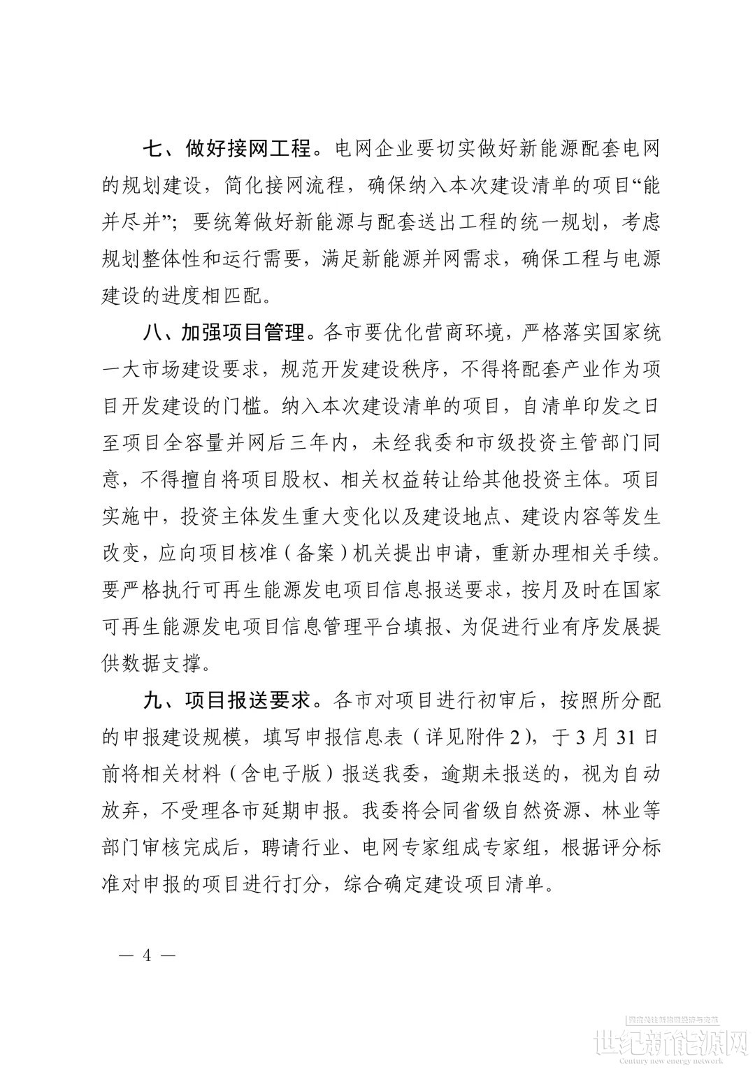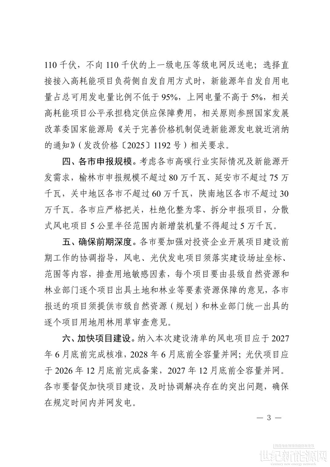 纳入本次建设清单的风电项目应于2027年6月底前完成核准,2028年6月底前全容量并网;光伏项目应于2026年12月底前完成备案,2027年12月底前全容量并网。各市要督促加快项目建设,及时协调解决存在的突出问题,确保在规定时间内并网发电。