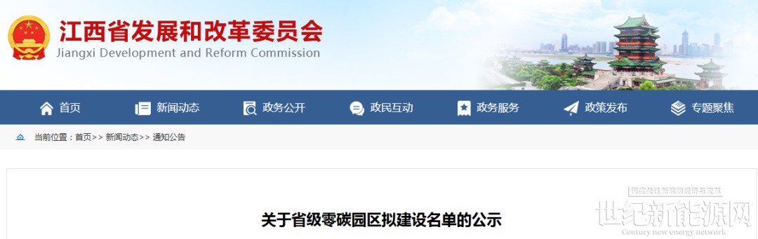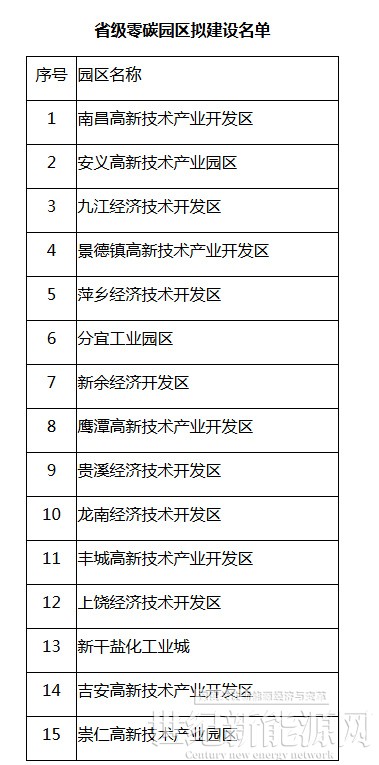 2月4日,江西省发展和改革委员会发布关于省级零碳园区拟建设名单的公示。