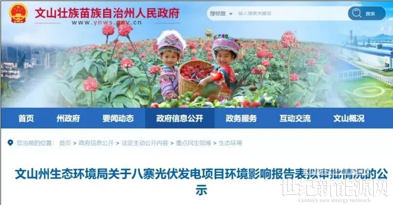 1月29日,云南文山州生态环境局发布关于八寨光伏发电项目环境影响报告表拟审批情况的公示。
