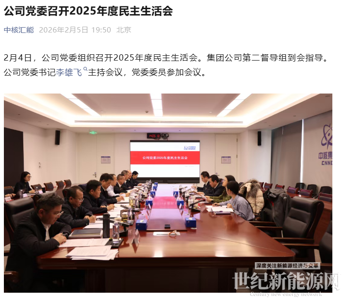 2月4日,中核汇能公司党委组织召开2025年度民主生活会。集团公司第二督导组到会指导。公司党委书记李雄飞主持会议,党委委员参加会议。上述信息显示,李雄飞已任中核汇能党委书记。