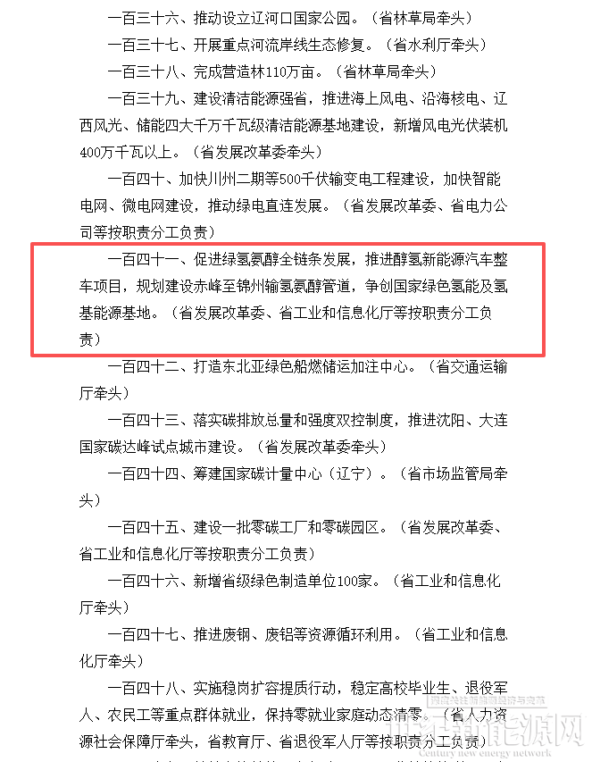 文件指出,促进绿氢氨醇全链条发展,推进醇氢新能源汽车整车项目,规划建设赤峰至锦州输氢氨醇管道,争创国家绿色氢能及氢基能源基地。同时,打造东北亚绿色船燃储运加注中心。