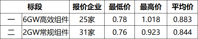 表:华电集团2026年光伏组件集中采购开标结果(单位:元/W)