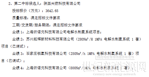 根据公示:第一中标候选人为长春绿动氢能科技有限公司,投标报价为3088万元;第二中标候选人为陕西兴燃科技有限公司,投标报价为3642.65万元。