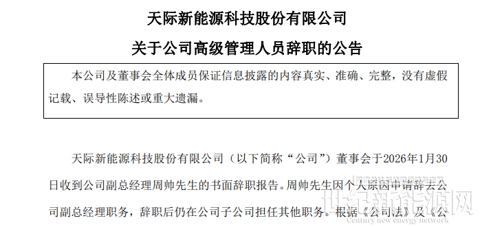 2026年1月31日,公司副总经理周帅因个人原因辞去副总经理职务,辞职后仍在子公司担任其他职务。