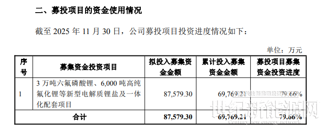 与此同时,公司重点推进的“3万吨六氟磷酸锂、6000吨高纯氟化锂等新型电解质锂盐及一体化配套项目”也宣布延期,达到预定可使用状态日期从2025年12月调整至2026年12月。