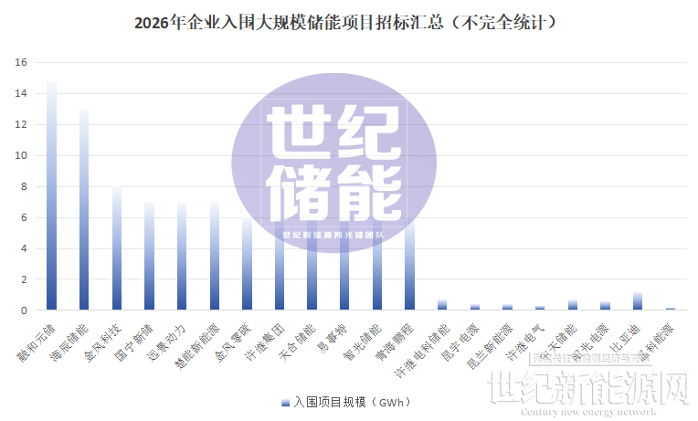 2026年刚过去不到两个月,储能招标市场的热度已远超预期。从央企GWh级集采到地方独立共享储能项目,从电芯到系统集成,一场围绕订单与价格“抢位战”全面打响。据世纪储能不完全统计,1~2月共有23.69GWh大型储能项目集中开标,超20家企业从中斩获订单,覆盖电池、系统集成等核心环节。