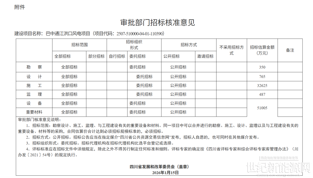 近日,四川省发改委发布关于巴中通江洪口风电项目核准的批复。