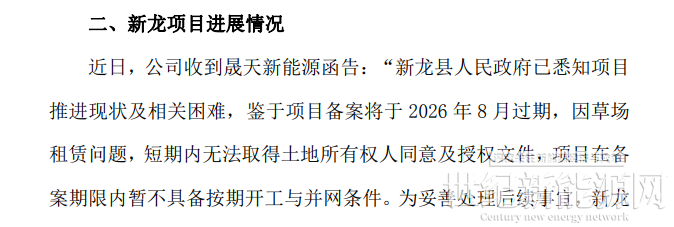 值得注意的是,当时公告称,新龙项目总体进度计划在2024年9月30日前实现全容量并网发电,而乡城项目预计将在2026年底投产并网完成建设。