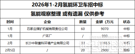 1月初,石家庄煤矿机械有限责任公司中标60辆氢能环卫车大单,中标金额近亿元,成为开年最大的氢能车辆中标项目。