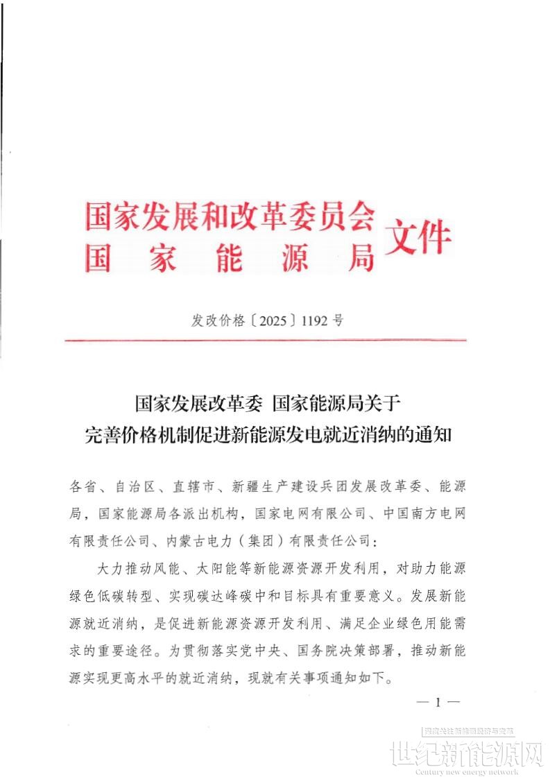 附件:国家发展改革委+国家能源局关于完善价格机制促进新能源发电就近消纳的通知.pdf