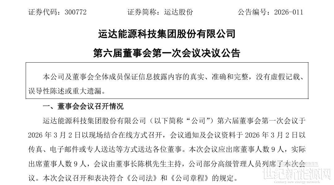 3月2日,运达股份发布《第六届董事会第一次会议决议公告》以及《关于董事会完成换届选举及聘任高级管理人员、证券事务代表、内部审计部门负责人的公告》,公告称: