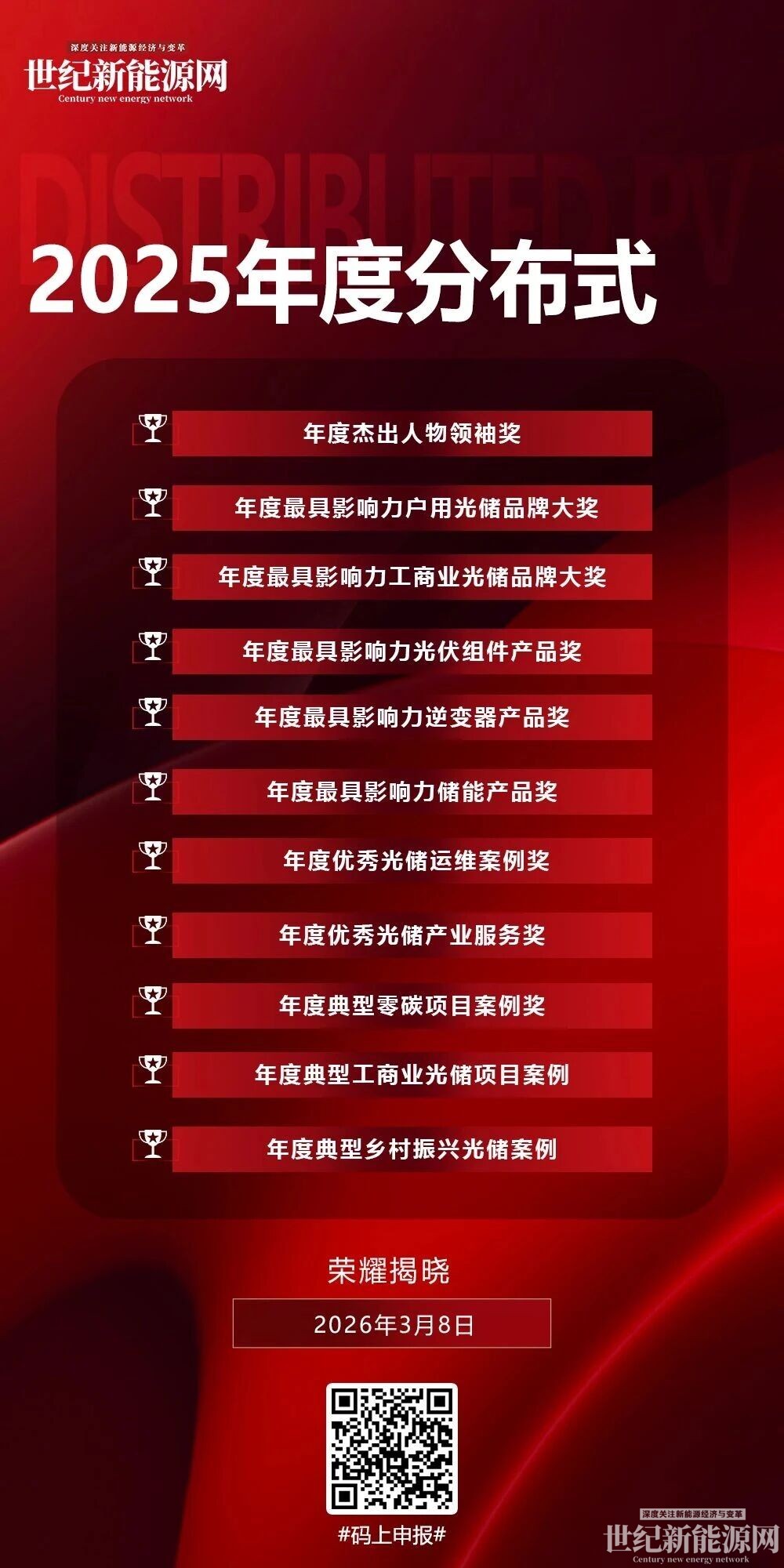 同步举办2025年度颁奖盛典,采用综合评分标准,设杰出人物、影响力品牌、优秀案例等11项奖项,表彰行业标杆。大会汇聚产业链从业者,搭建交流合作平台,助力分布式光储产业高质量发展。