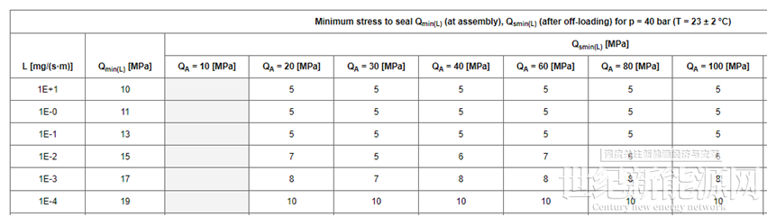 泄漏数据(EN13555测试标准,压力40bar的面压和泄漏等级)
