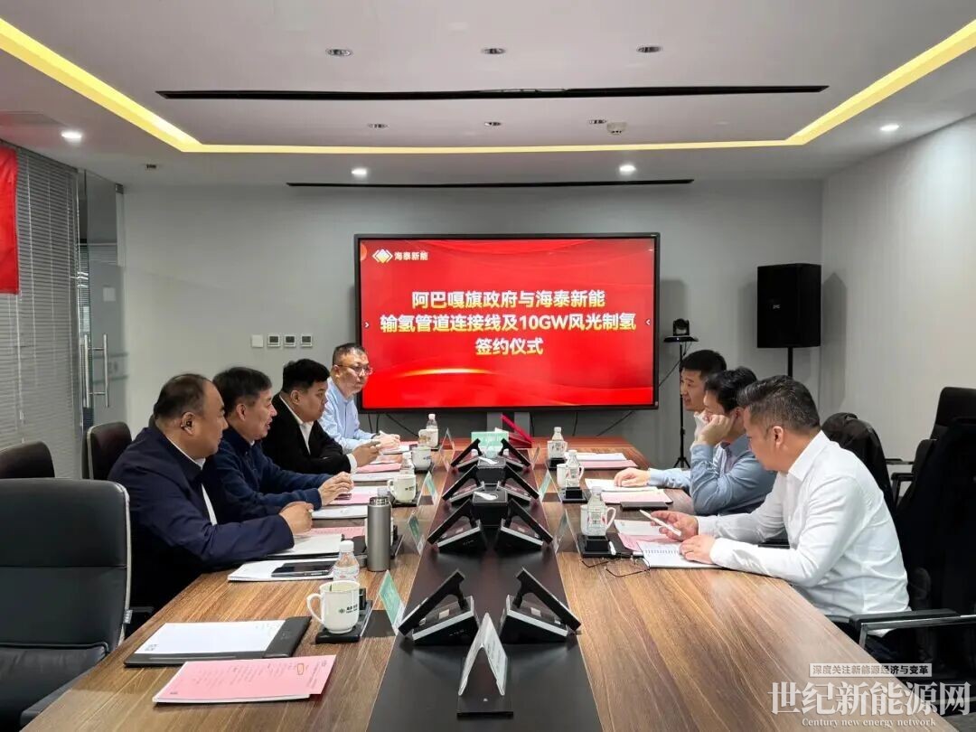 3月5日,内蒙古阿巴嘎旗旗委副书记、旗长那顺巴图、旗委常委、副旗长窦艳瑶、旗商务局局长段永利一行到访唐山海泰新能科技股份有限公司(以下简称“海泰新能”),董事长王永、副总裁孟永、氢能事业部总经理白天明、内蒙分公司总经理张亮等人陪同出席,双方聚焦绿氢全产业链发展、氢气长输管道建设等领域进行深入探讨。