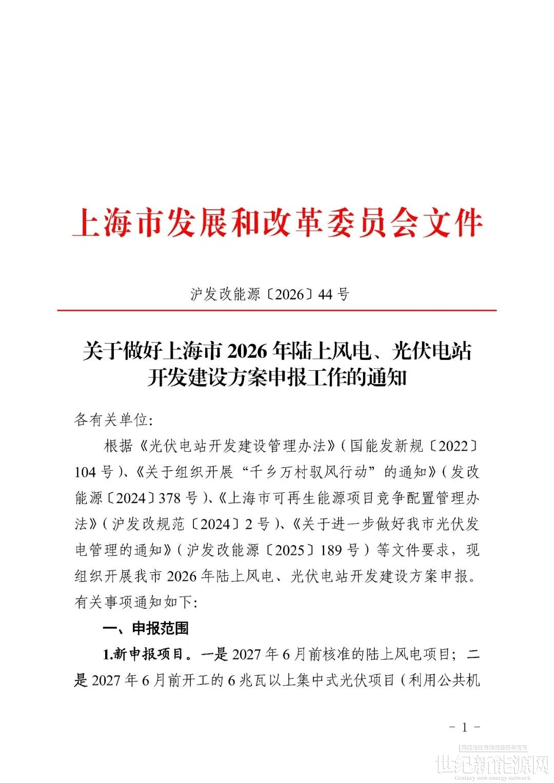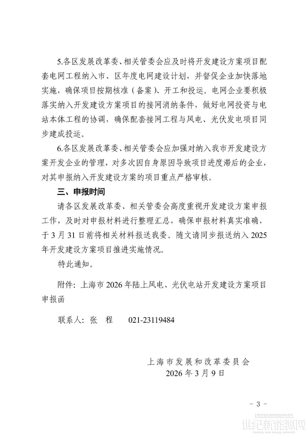 3月10日,上海市发展和改革委员会发布关于做好上海市2026年陆上风电、光伏电站开发建设方案申报工作的通知。